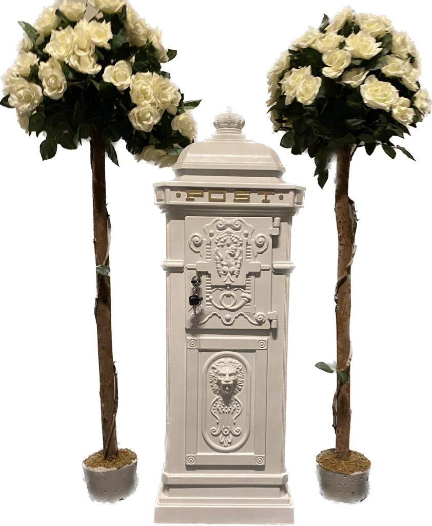 Supplied in a grey plant pot with white stones and standing approx 4ft tall.