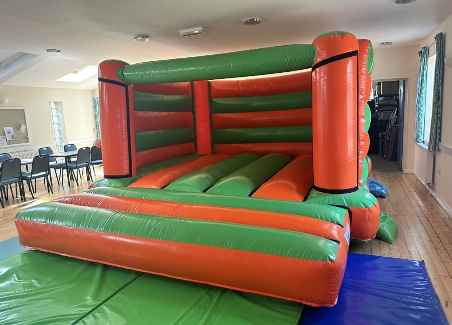 12ft x 15ft low height castle in a beautiful green and orange design.