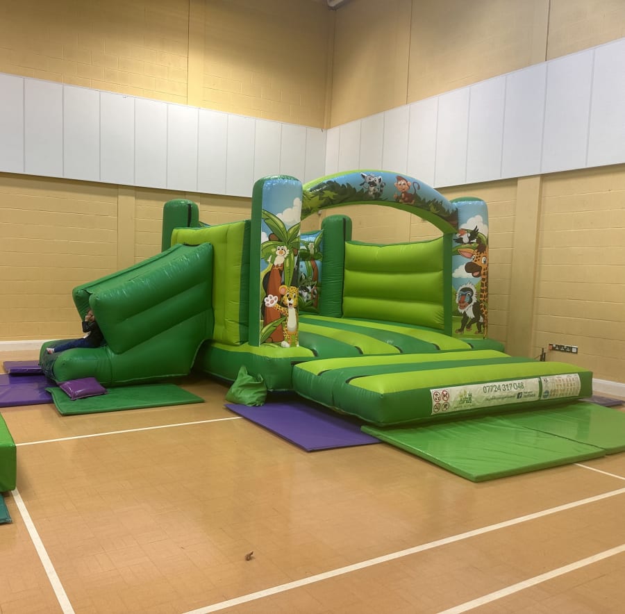 15ft x 18ft Jungle themed Bouncy Castle with a Side Slide.