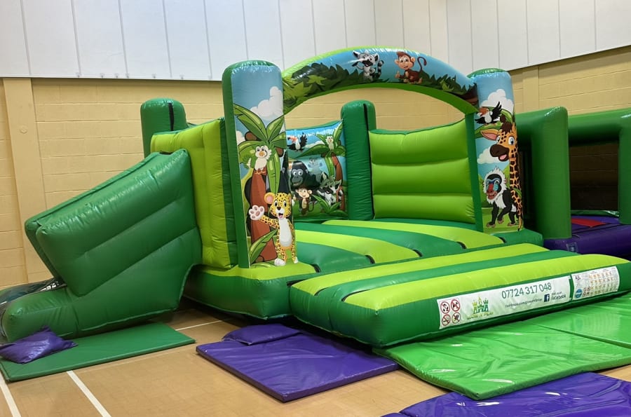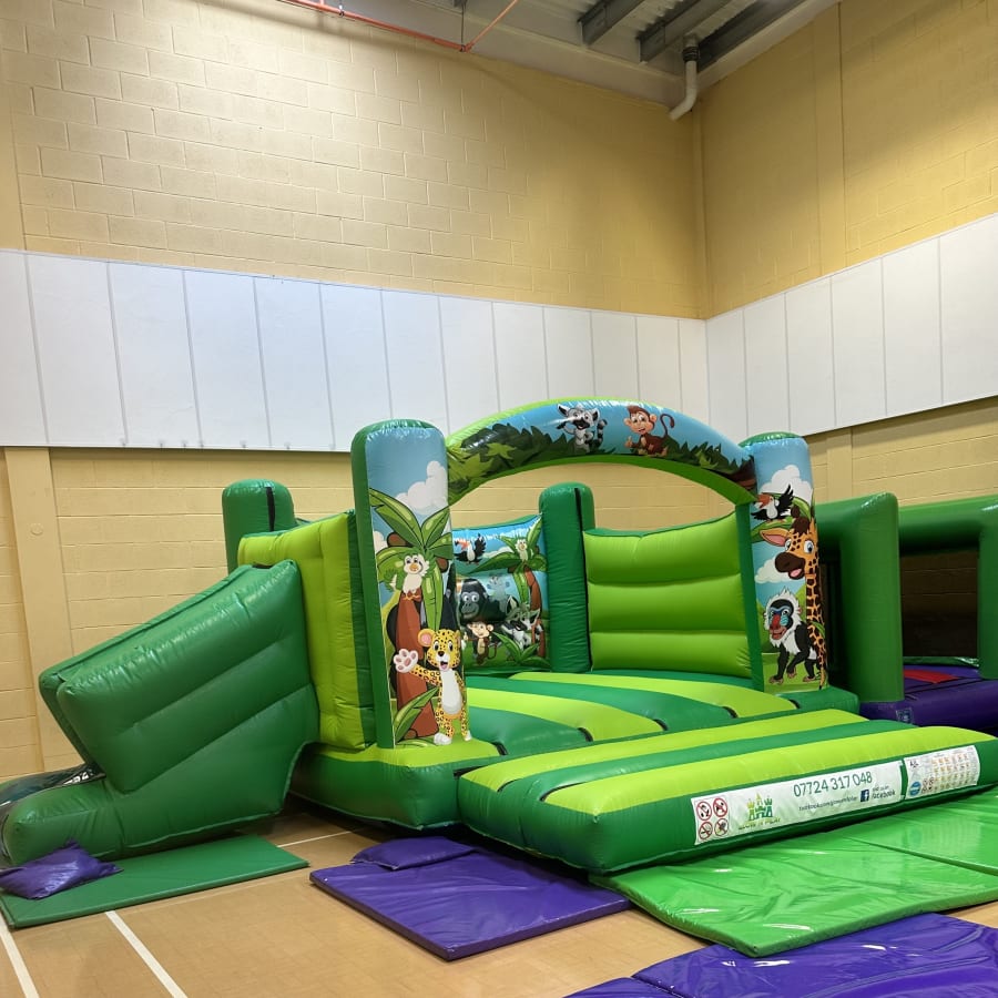 15ft x 18ft Jungle themed Bouncy Castle with a Side Slide.