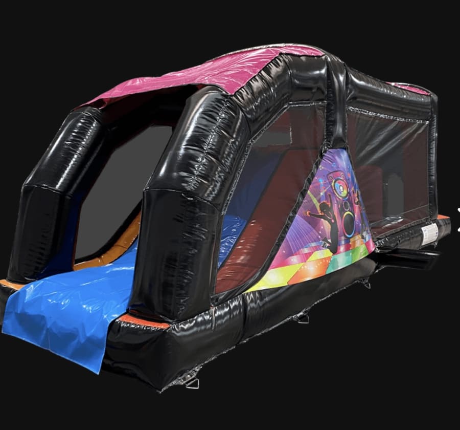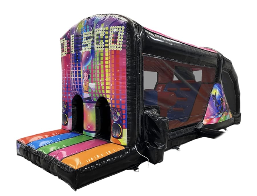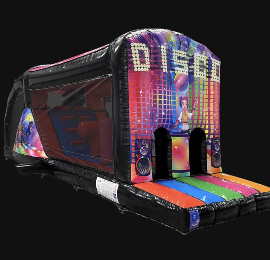The Disco Fun Run is designed to keep the fun going with its 6ft platform slide, bish bashes, and T obstacle course. 🌈 Whether you're hosting a birthday bash, corporate event, or school carnival, this inflatable will add excitement and thrill to any occasion.