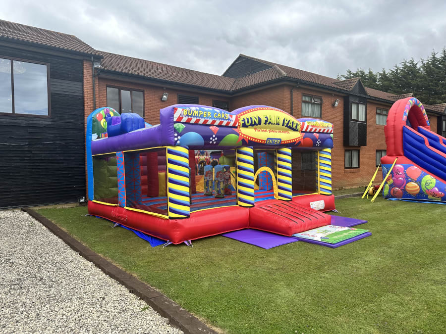 Includes our 12ft Platform Slide, Funfair Multiplay Castle, Smaller 12ft x 12ft Castle, Penalty Shootout, Candy floss, Slush and up to 10 hours manning.